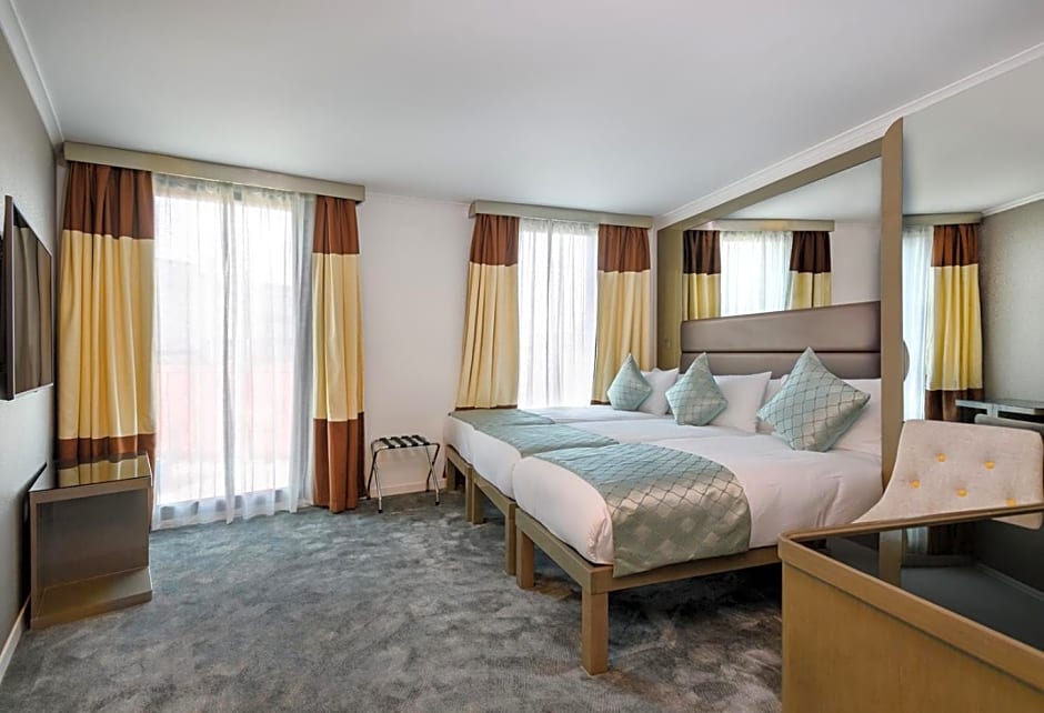 This room is soundproofed has air conditioning, includes access to the executive lounge for light snacks and drinks, Wifi, Large LED TV with google chrome cast, laptop safe, ironing board and iron, work desk, welcome tray, robe/slippers, hairdryer and complimentary toiletries. Room can be set as a double or twin please advise your preference at time of reservation.